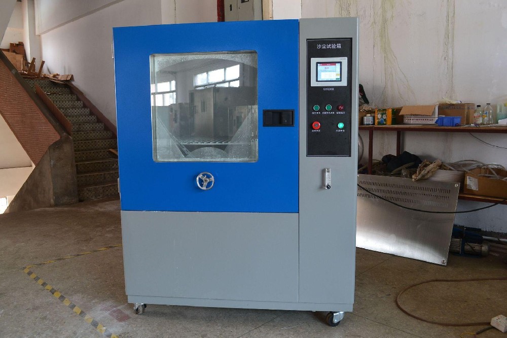 沙尘试验箱学名为“砂尘试验箱”,模拟自然界风沙气候对产品的破坏性,适用于检测产品的外壳密封性能,主要用于外壳防护等级标准中规定的IP5X和IP6X两个等级的试验。设备有载灰尘垂直循环的气流,试验用灰尘可以循环使用 ,整个风道采用进口高级不锈钢板制作,风道底部与锥形料斗接口连接,风机进出风口直接与风道连接,再在适当的位置上将工作室顶部扩散口接入工作室体,形成“O”型闭式垂直吹尘循环系统,使气流能顺畅地流动,最大限度的使尘土分散均匀。采用单台大功率低噪音离心风机,根据试验需要用变频调速器来调节风速。